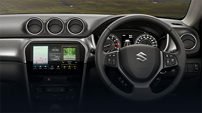Sculpted, sleek and upswept, its sporty SUV silhouette evokes a sense of freedom and the piano black grille gives an aggressive edge to Vitara Hybrid’s exterior.